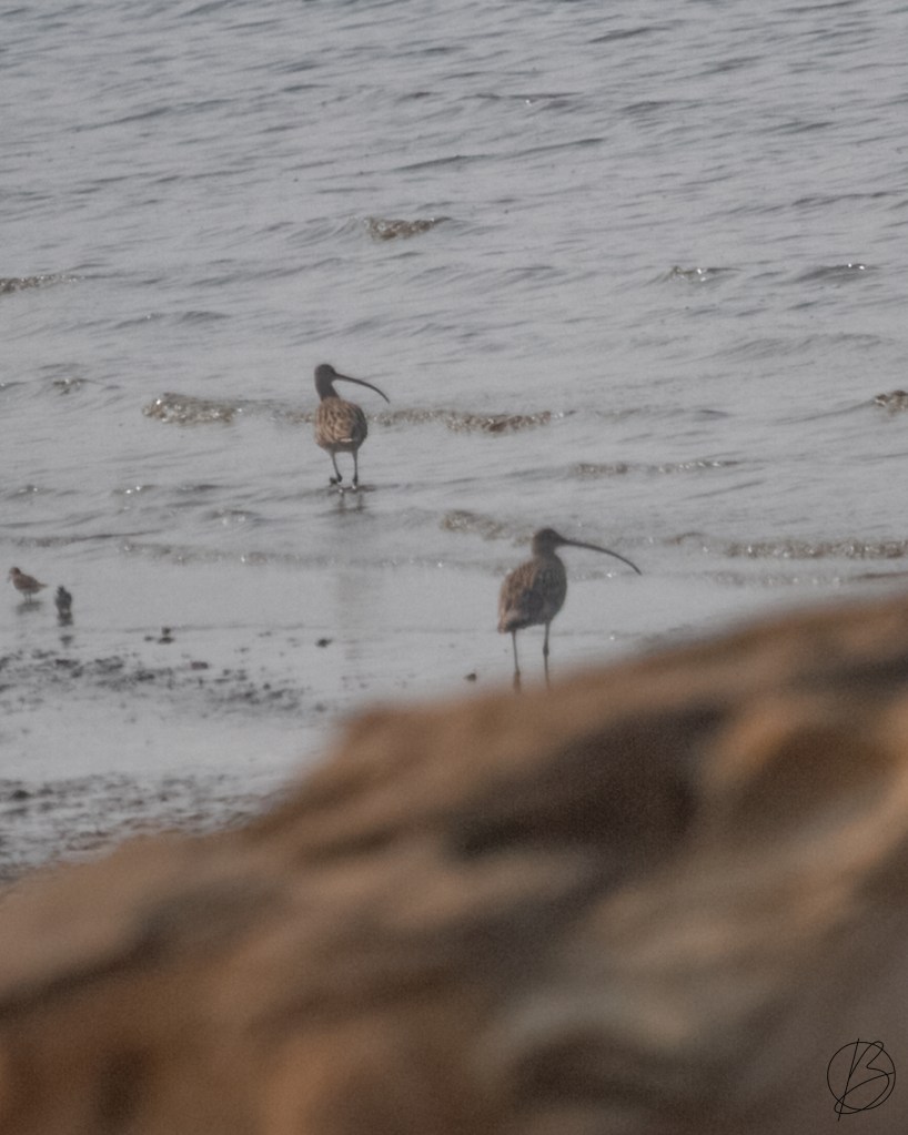 I went down to the beach after the Curlews and on the way found a Great Knot! Unfortunately, the Curlews flew to the far end of the beach and joined two other Curlews there.