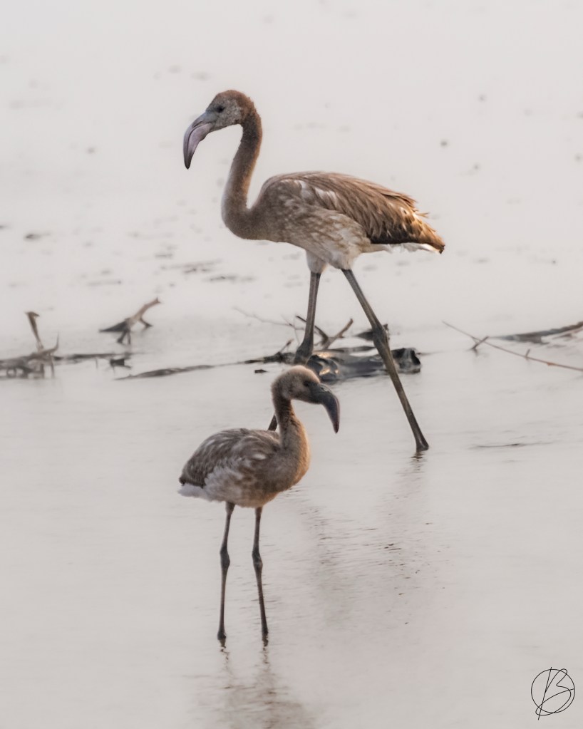 Just outside Khadir Bet Island (a small island on which Dholavira is situated), we got our first glimpse of the famous ‘Salt Desert’! There I saw a Greater Flamingo juvenile and a Lesser Flamingo juvenile.